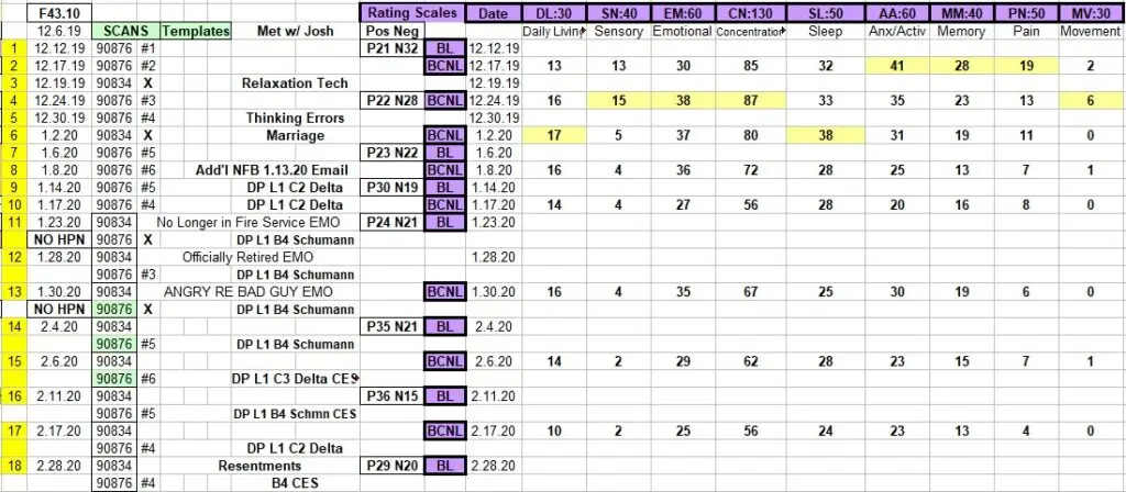Eventually I moved closer to Tampa with my own equipment including Neurogen-HPN, collaborated with a couple of other practices and came to a screeching halt when COVID hit. (The NFB data below is from my treatment of a workers comp client in collaboration with Dr. Joshua Shannon’s practice.) During COVID I resumed telehealth ‘talk’ therapy which renewed my resolve to offer more comprehensive treatment options. To provide a combination of remote coaching/counseling and direct physical treatment services.