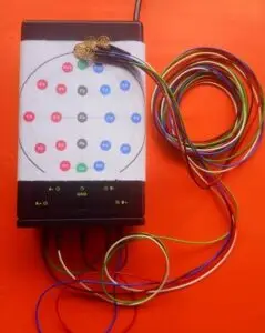 All signals can be sensed by all point locations—the closest neurons have the strongest effect on signals. The EEG-Interface amplifier averages and digitizes the EEG signals.